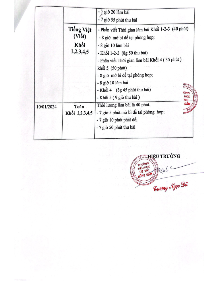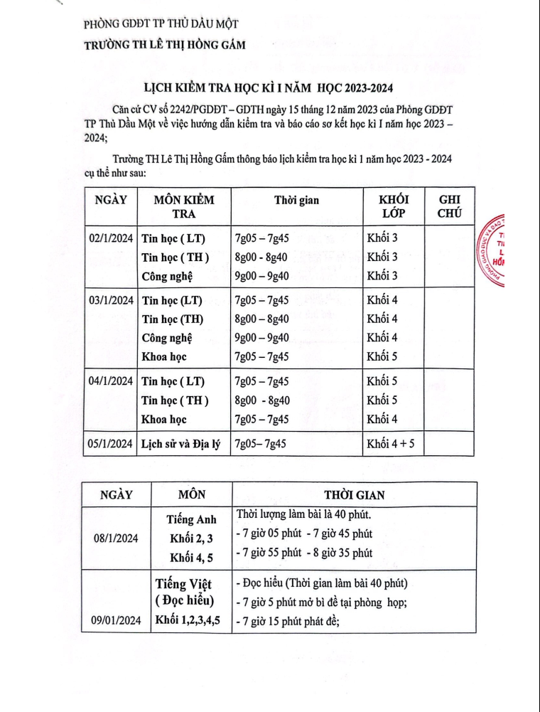 Thông báo Lịch thi học kì 1 năm học 2023 - 2024